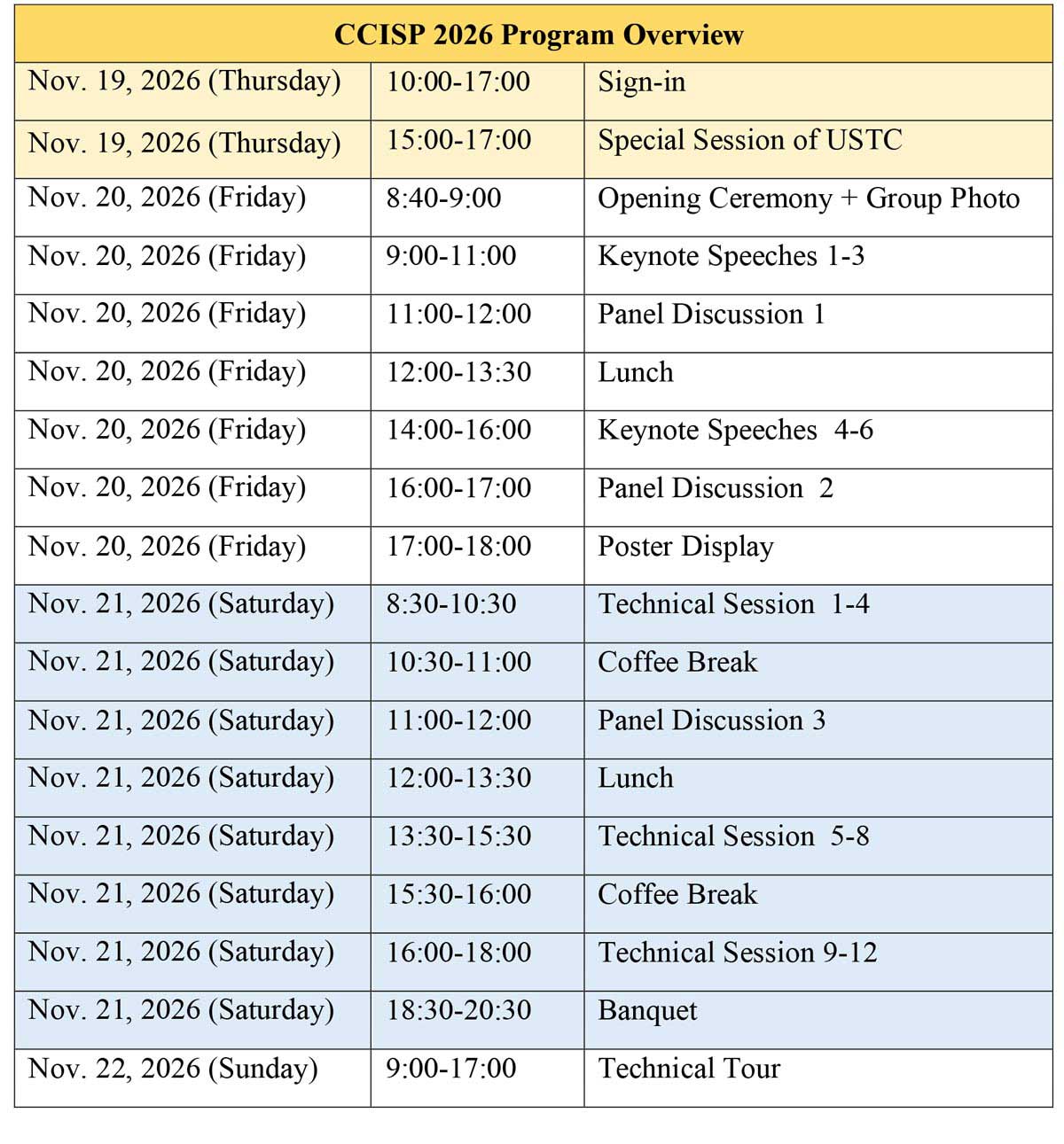 2026 11th International Conference on Communication, Image and Signal Processing (CCISP 2026), which is co-organized by Hefei University of Technology, Sichuan University, technically sponsored by University of Science and Technology of China, supported by Asia Pacific Institute of Science and Engineering(APISE). CCISP 2026 conference will be held in Hefei, China from Nov. 19 to 22, 2026.