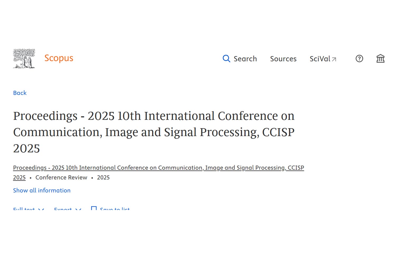(Mar-17-2026) CCISP 2025 conference proceeding has been indexed by EI Compendex and scopus!