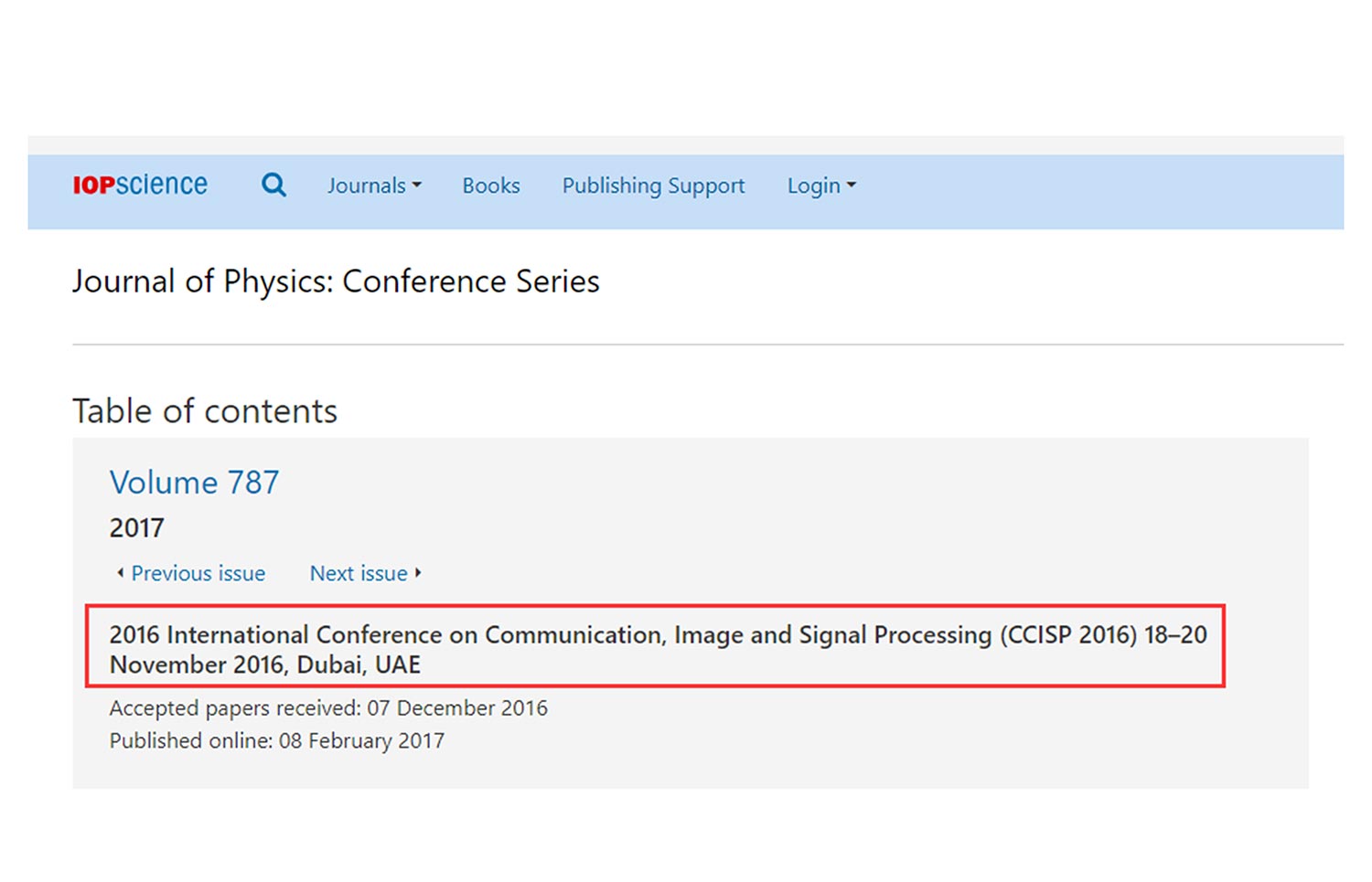 CCISP 2016 -IOP: JPCS -(ISSN: 1742-6588) (Link)