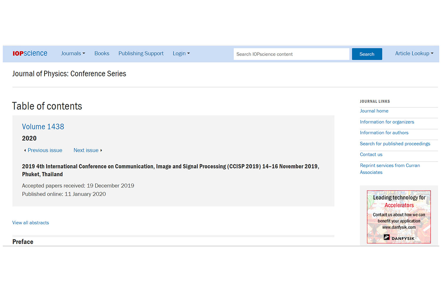 CCISP 2019 -IOP: JPCS -(ISSN: 1742-6588) (Link)
